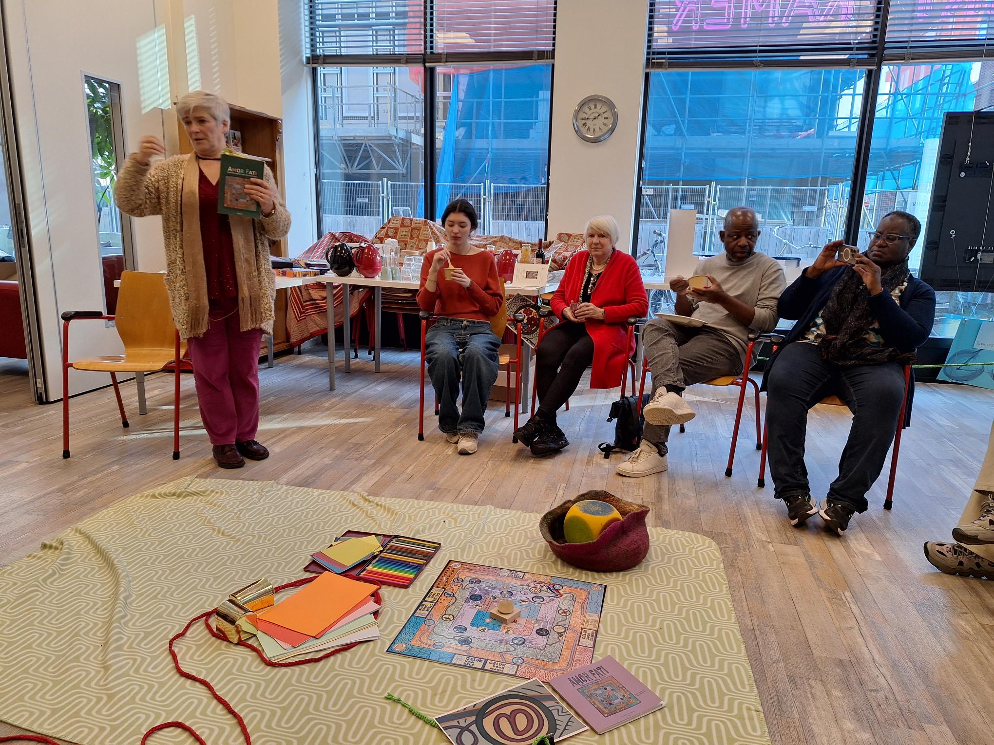 Amor Fati is a board game — as well as a book on the intercultural vision and mission of the Quest for Wisdom — in which you re-enact and reflect on life as a journey through a colourful landscape full of symbolism, picking up intercultural visions and mythical wisdom about the journey of life along the way. How the picked wisdoms enrich your vision on life, you share with your mates in the group, so that you deepen each other’s insights. As a result, the game stimulates both personal growth and offers an exercise for the art of living as a world citizen.