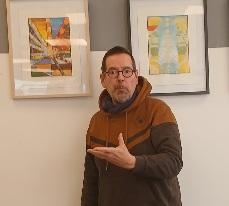 Greg Suffanti vertelt over zijn Migranten-Aquarellenserie bij de heropening van de Amor Mundi tentoonstelling in de OBA Reigersbos.