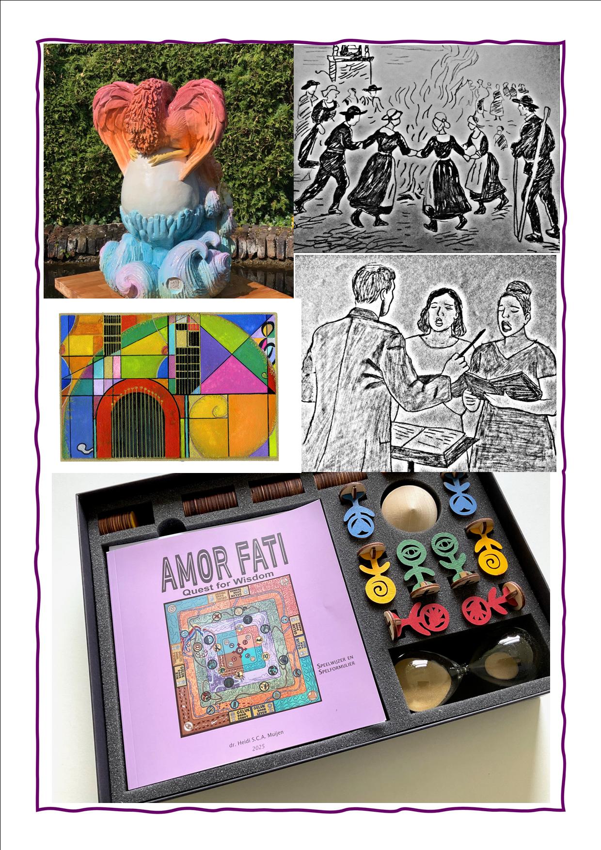 De reeks opent met Amor Fati, spelende wijsheid voor de kosmopolis, waarin Heidi Muijen de vraag naar wereldburgerschap aan de hand van het Rad van interculturele levenskunst exploreert. Het boek belicht daarmee zowel de visie van de Quest for Wisdom foundation als de achtergrond voor het door haar ontwikkelde gelijknamige bordspel dat mythisch-filosofische symboliek uit de vier windstreken aankaart. Greg Suffanti telling about the aquarelles for Amor Fati