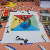 Mitra Muijen en Madalina Hristache nemen ons mee in een muzische werkvorm rond het Amor Fati thema “inter-culturele vorming” rond de symbolen in de Ronde van Inter-culturele Vorming van Amor Fati, zoals de brug, de ladder en de lantaarn … en ook de bril, het anker en de klauwhamer! Ze staan voor verbindende en onderscheidende wijsheid tussen culturen en helpen fricties en verschillende stemmen in onszelf te verbinden.